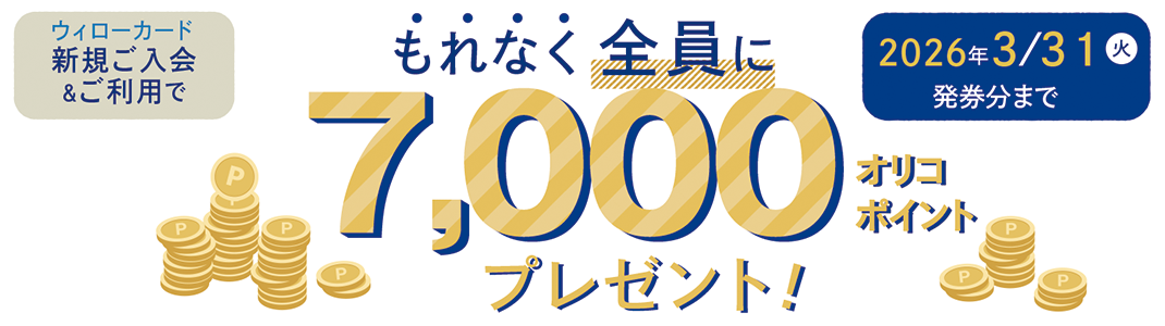 【 2025/10/1(水)~ 2026/3/31(火)まで 】新規ご入会&ご利用でもれなく全員に7,000オリコポイントプレゼント!