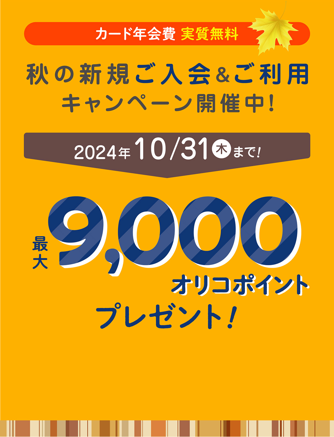 - ※ポイントプレゼント時点でカードを解約されている場合や無効の場合、「eオリコ」を退会されている場合は、ポイントプレゼントの対象外となります。